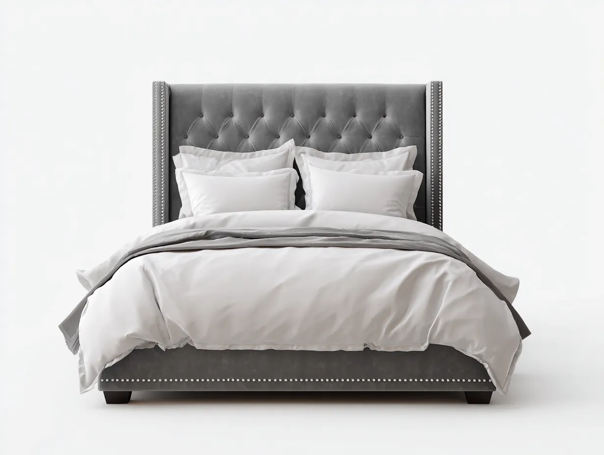 Double Beds-Velvet-215x170x125 cm-Grey-Classic Tufted Design